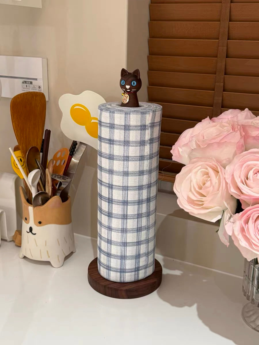 Cat-Shaped Solid Wood Paper Towel Holder